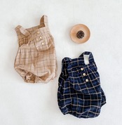 チェック柄がとっても可愛い帽子&ロンパースのセットです。