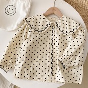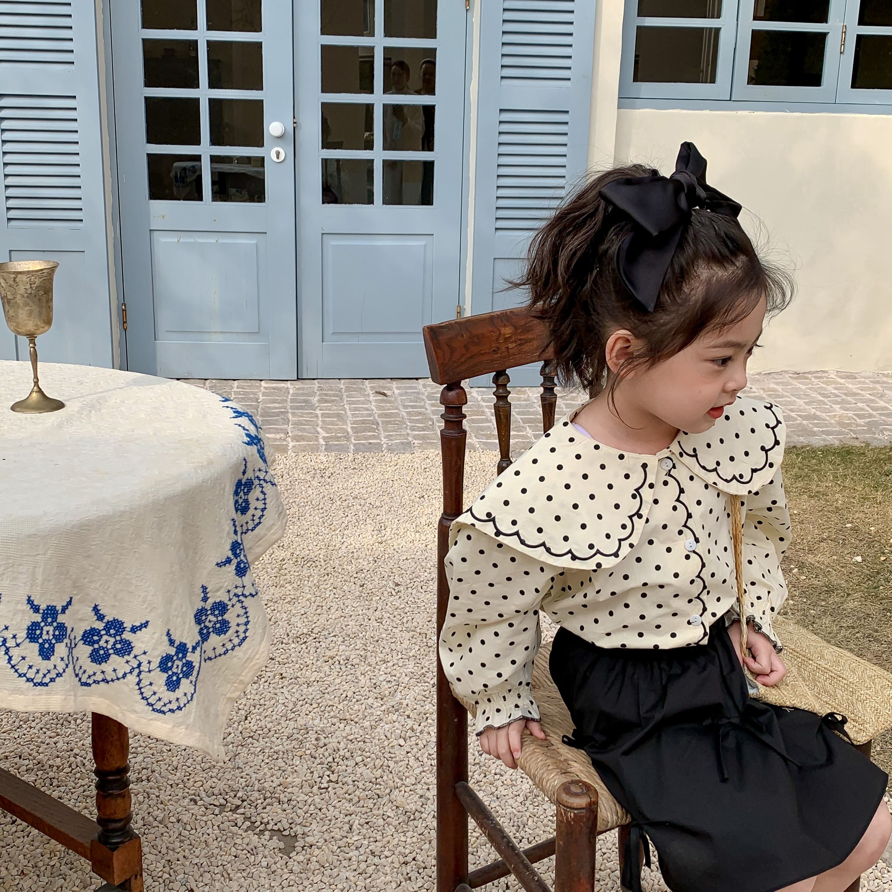 ブラウス ドット柄 春 秋 襟 ガーリー 長袖 シャツ モノトーン レトロ 子供服 子供 キッズ 韓国 韓国子供服 女の子 男の子 男児 女児 ユニセックス 男女兼用 人気 おすすめ かわいい 可愛い おしゃれ オシャレ プレゼント 贈り物 ギフト 誕生日 バースデー 80 90 100 110 120 130 0歳 1歳 2歳 3歳 4歳 5歳 6歳 7歳 8歳 9歳 10歳 11歳