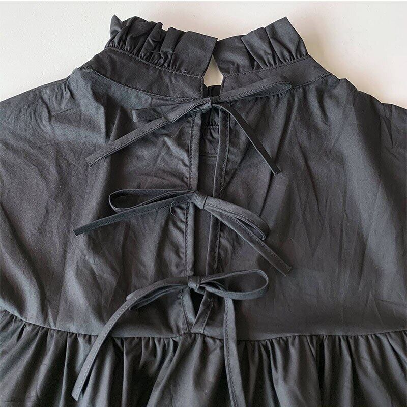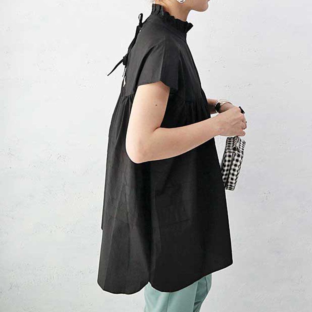 [ ママ服 ] ブラウス 春 夏 ママ服 フリル ノースリーブ ハイネック フリル ゆったりめ 体型カバー 無地 シンプル バックリボン バックコンシャス チュニック 韓国 人気 おすすめ かわいい 可愛い おしゃれ オシャレ プレゼント 贈り物 ギフト お出かけ 旅行