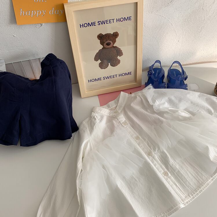 ブラウス チュール 春 秋 冬 シャツ ブラウス バンドカラー 長袖 無地 シンプル チュール フリル レース 子供服 子供 キッズ 韓国 韓国子供服 女の子 女児 人気 おすすめ かわいい 可愛い おしゃれ オシャレ プレゼント 贈り物 ギフト 誕生日 バースデー お出かけ 旅行 90 100 110 120 130 1歳 2歳 3歳 4歳 5歳 6歳 7歳 8歳 9歳 10歳