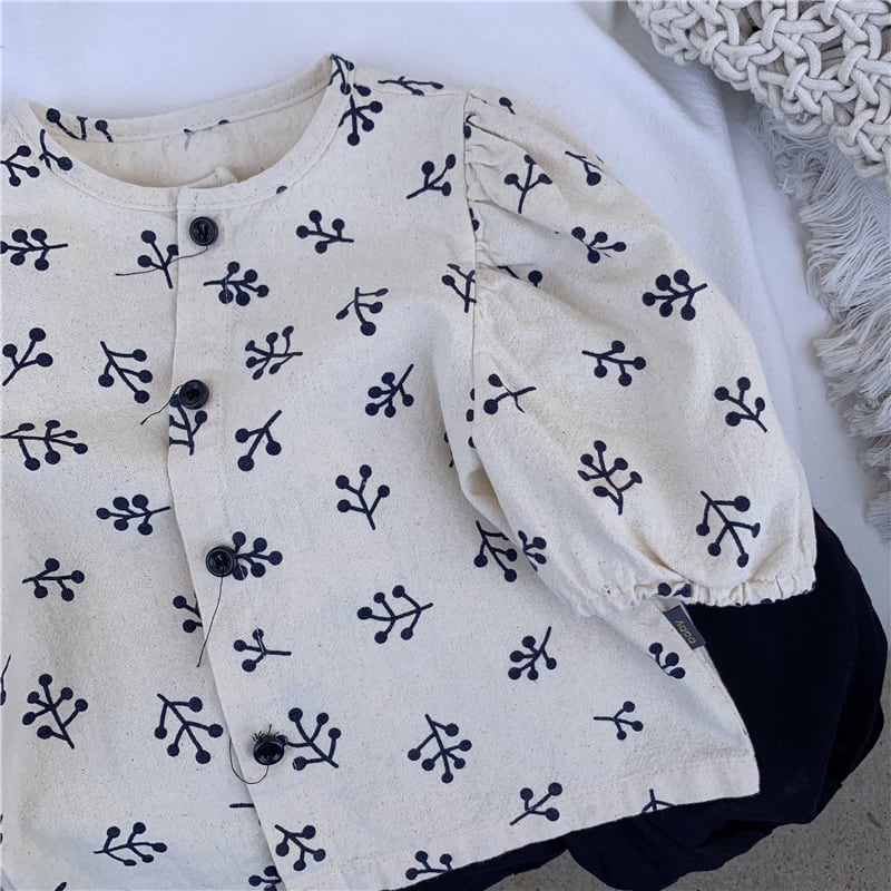 ブラウス 半袖 子供 ボタニカル柄 春 夏 北欧 パフスリーブ レトロ ノーカラー シンプル 子供服 子供 キッズ 韓国 韓国子供服 女の子 女児 人気 おすすめ かわいい 可愛い おしゃれ オシャレ プレゼント 贈り物 ギフト 誕生日 バースデー お出かけ 旅行 80 90 100 110 120 130 1歳 2歳 3歳 4歳 5歳 6歳 7歳 8歳 9歳