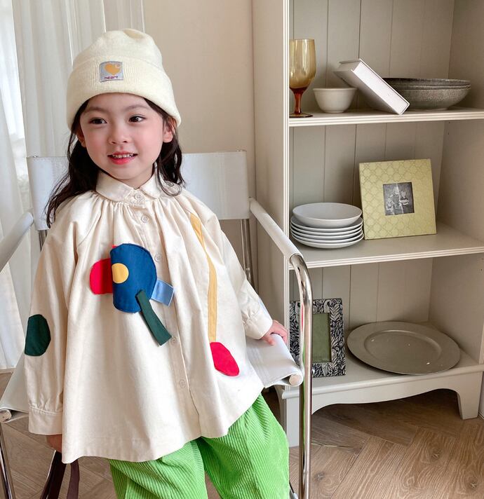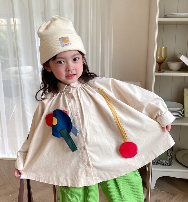 シャツ キッズ 長袖 ドルマンスリーブ 子供 Aライン 春 秋 レトロ パッチワーク カジュアル 立体 フレア ゆったりめ 韓国 韓国子供服 女の子 女児 人気 おすすめ かわいい 可愛い おしゃれ オシャレ プレゼント 贈り物 ギフト 誕生日 バースデー お出かけ 旅行 90 100 110 120 130 140 2歳 3歳 4歳 5歳 6歳 7歳 8歳 9歳 10歳 11歳