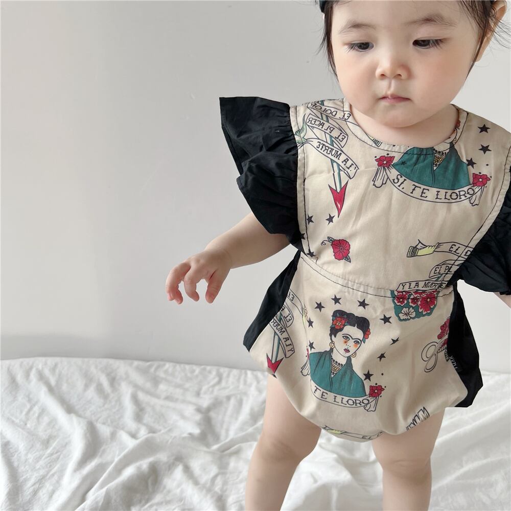ロンパース 半袖 柄 赤ちゃん ベビー服 フリル 春 夏 秋 アメカジ カジュアル POP 子供服 子供 キッズ 韓国 韓国子供服 女の子 女児 男の子 男児 ユニセックス 男女兼用 人気 おすすめ かわいい 可愛い おしゃれ オシャレ プレゼント 贈り物 ギフト 誕生日 バースデー お出かけ 旅行 66 73 80 90 0歳 1歳 2歳